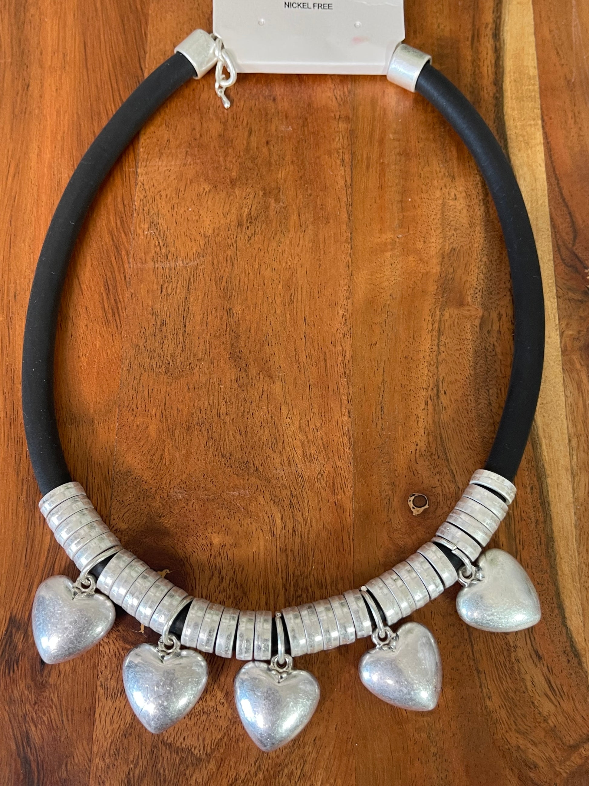 Crafted with exquisite detail, our Silver 5 Hearts Necklace is a timeless piece that adds elegance to any outfit. Made with high-quality silver, the 5 hearts are beautifully suspended from a leather strap, creating a modern and chic look. Perfect for any occasion, this necklace is a must-have for any jewelry collection.