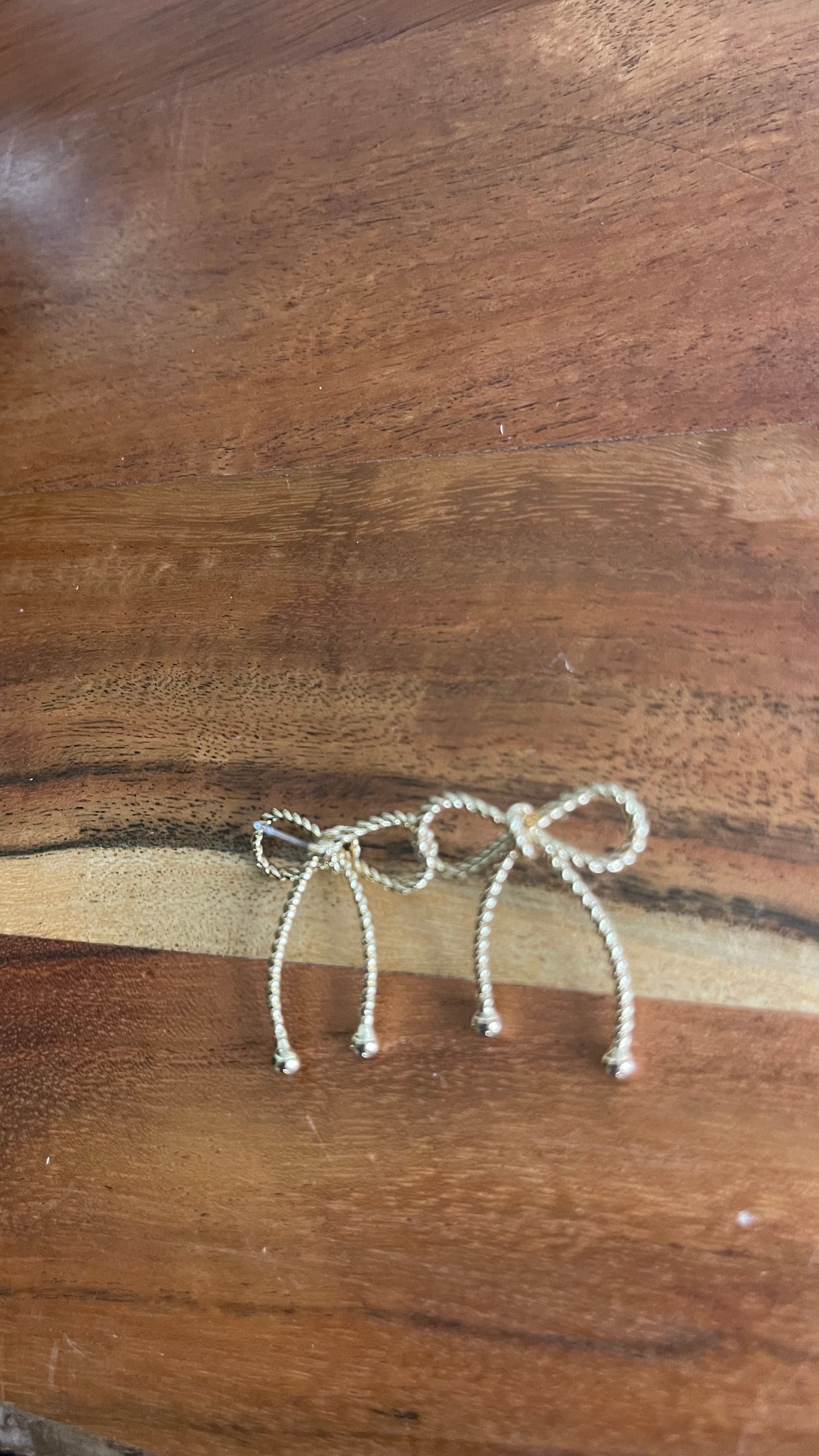 Expertly crafted with a stunning gold finish, these small bow earrings are the perfect addition to any outfit. Using precise measurements and high-quality materials, these earrings exude elegance and sophistication. Embrace the timeless beauty of these earrings and complete your look with a touch of luxury.
