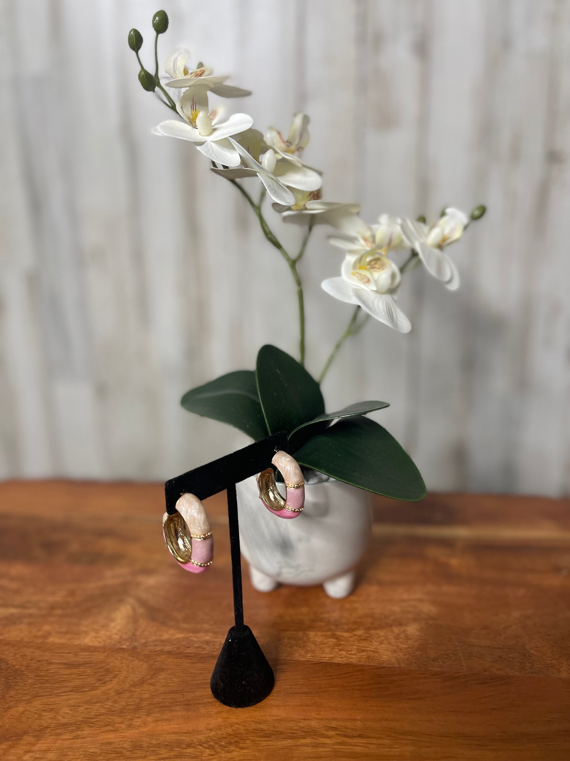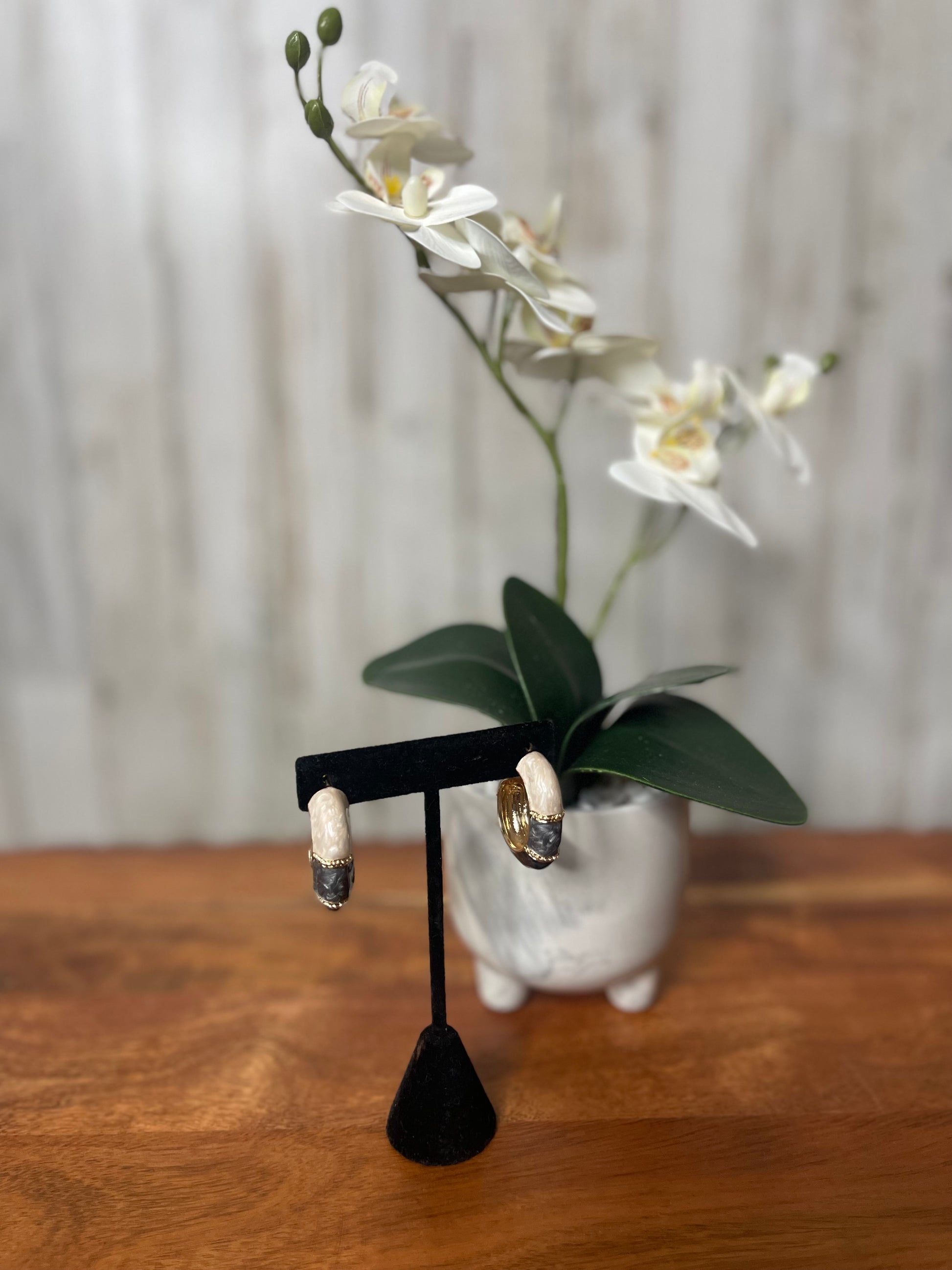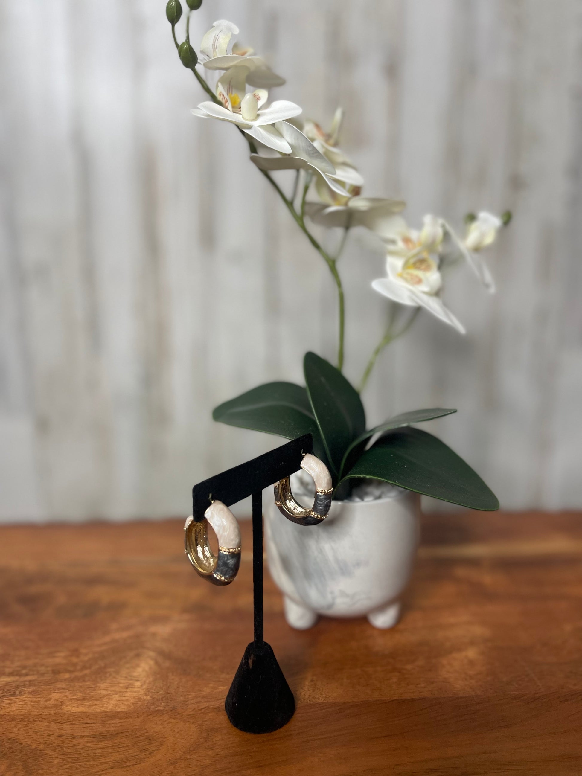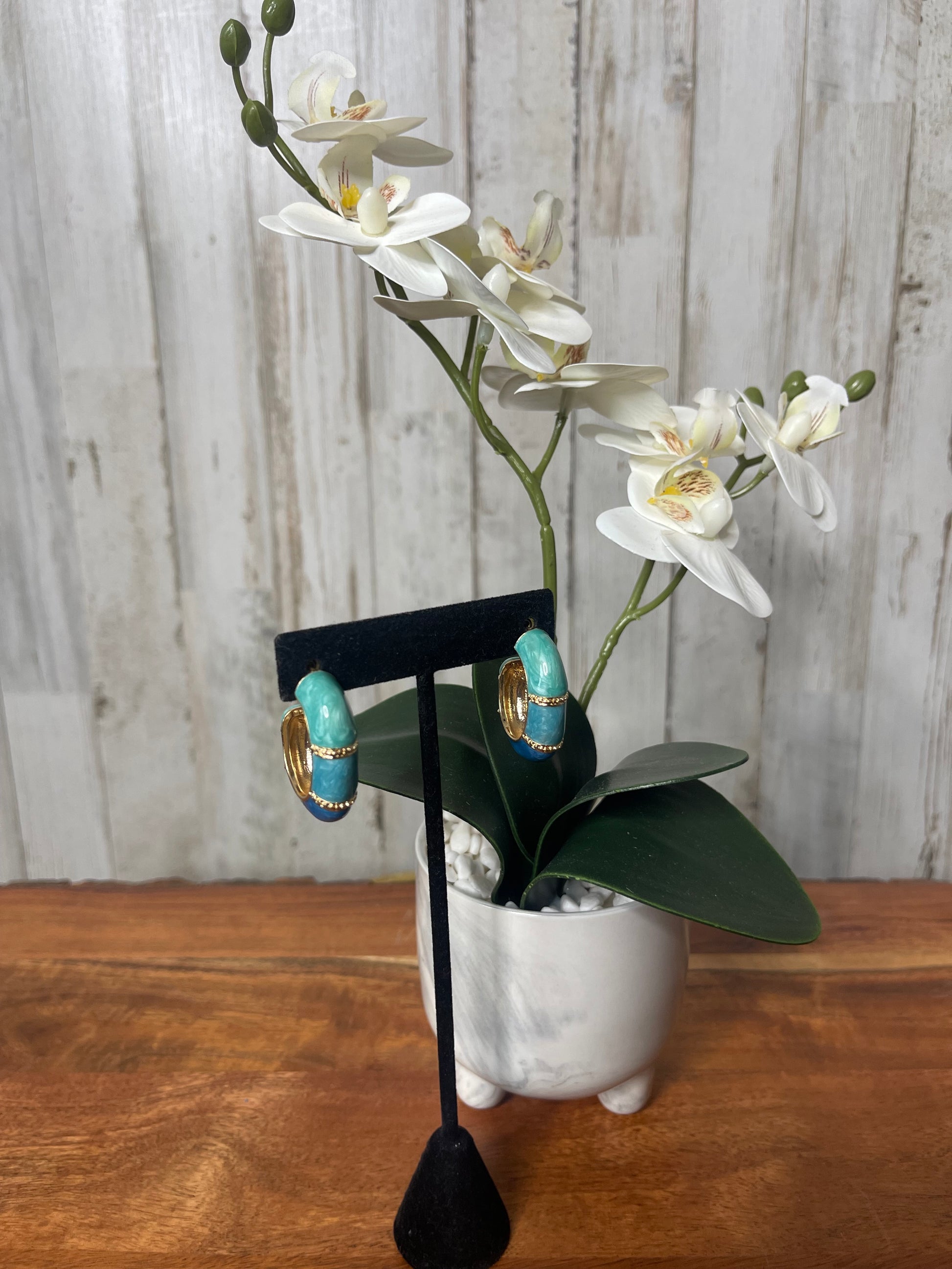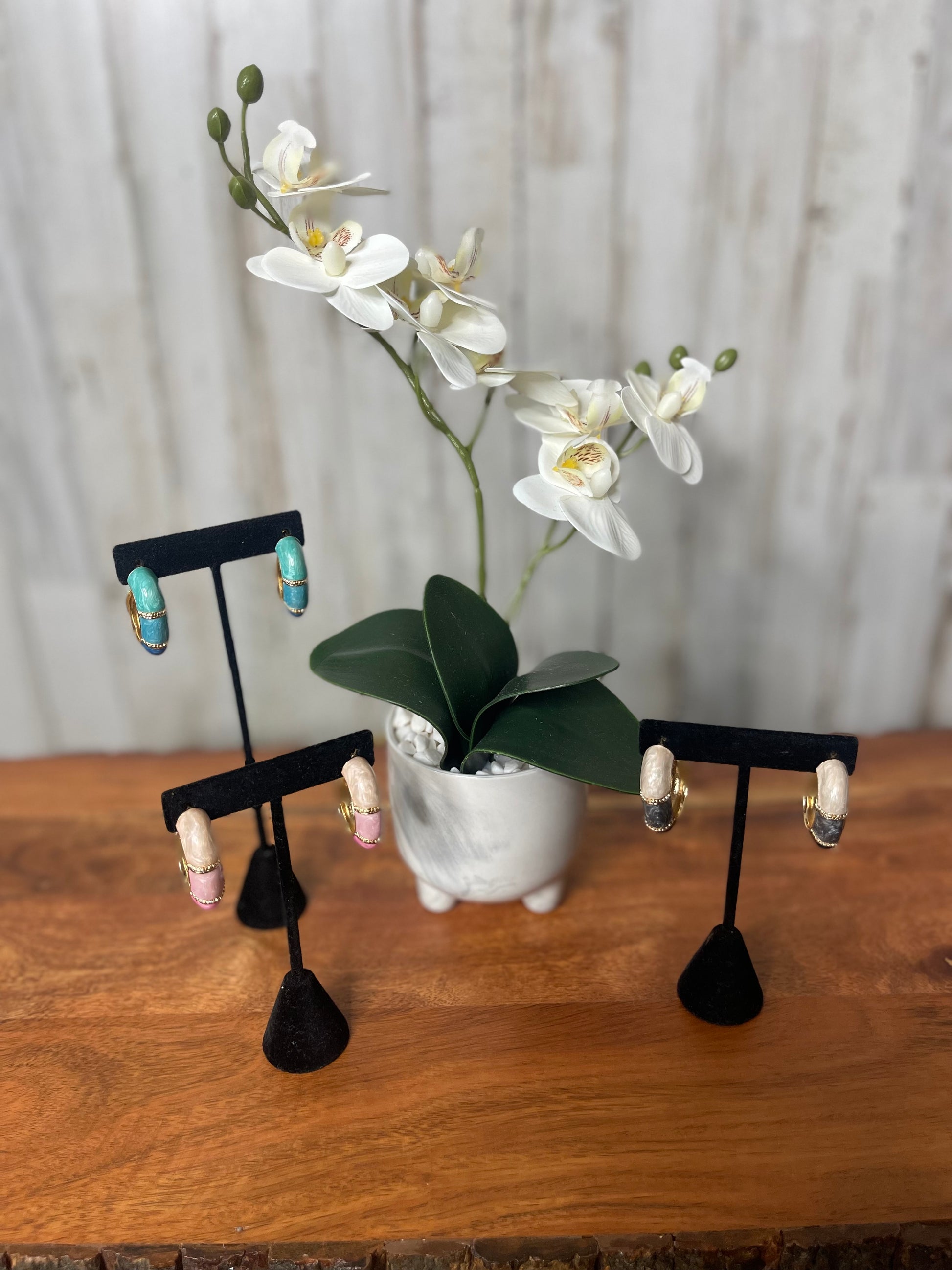 These color blocked two-tone hoop earrings are the perfect accessory to add a touch of summer vibes to any outfit. Made with medium sized hoops, they offer a stylish and versatile option for any occasion. Pair them with our matching color blocked cuff bracelets for a complete and trendy look.