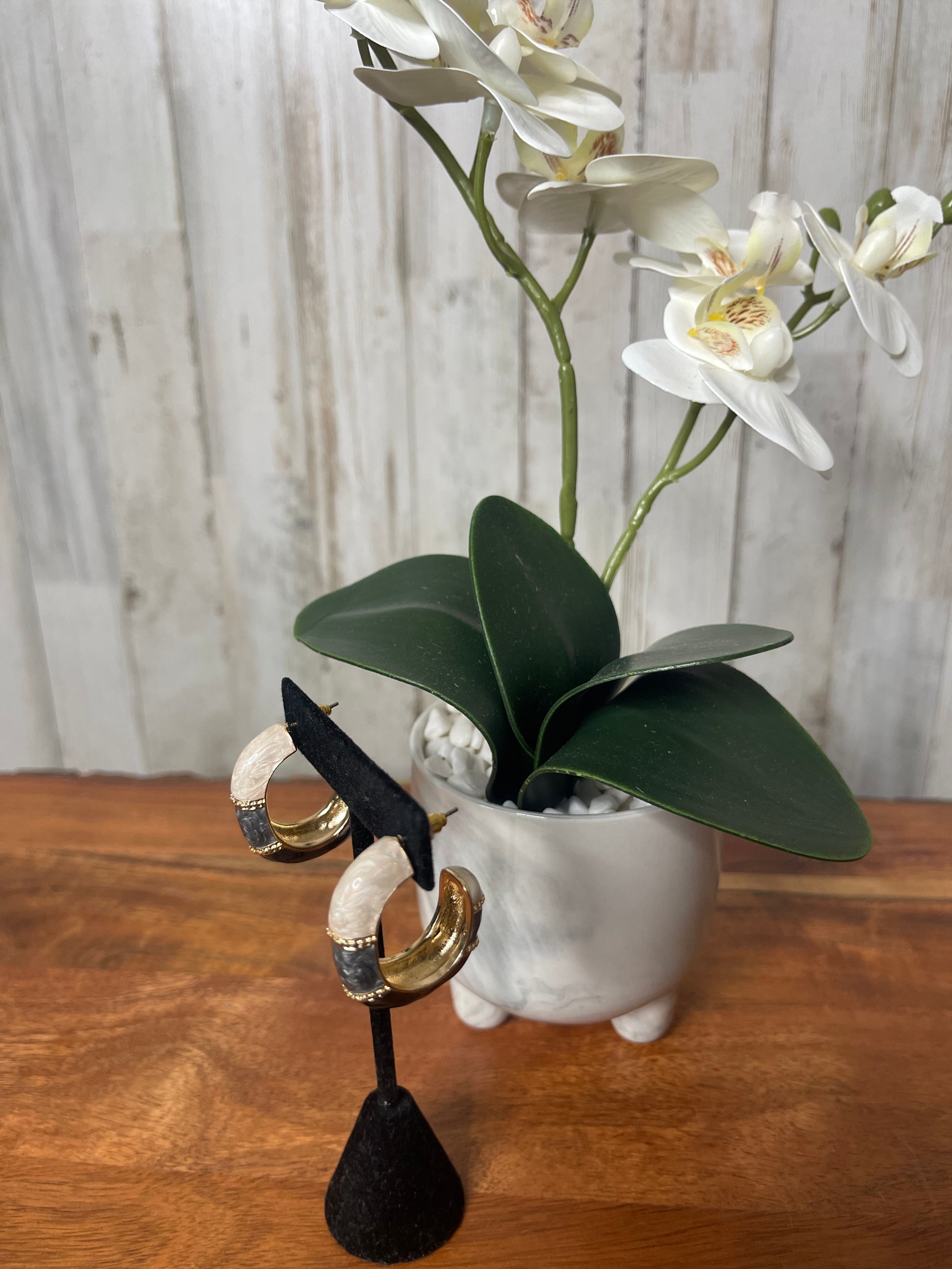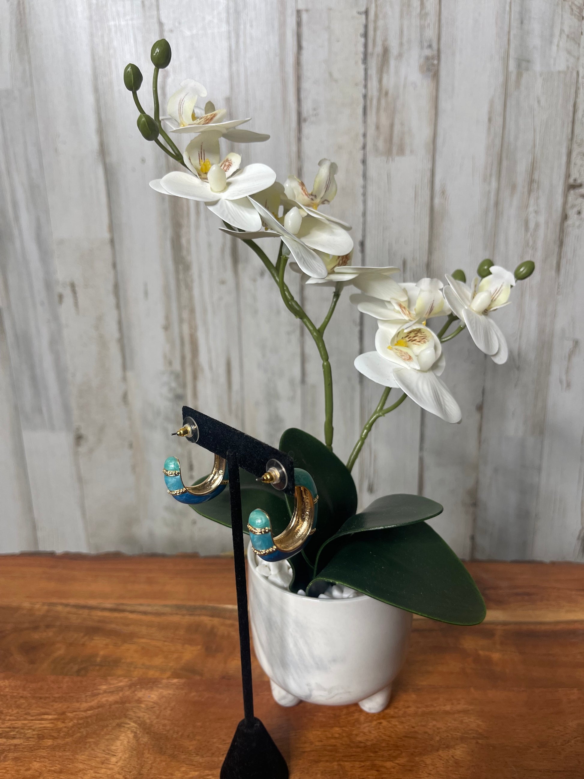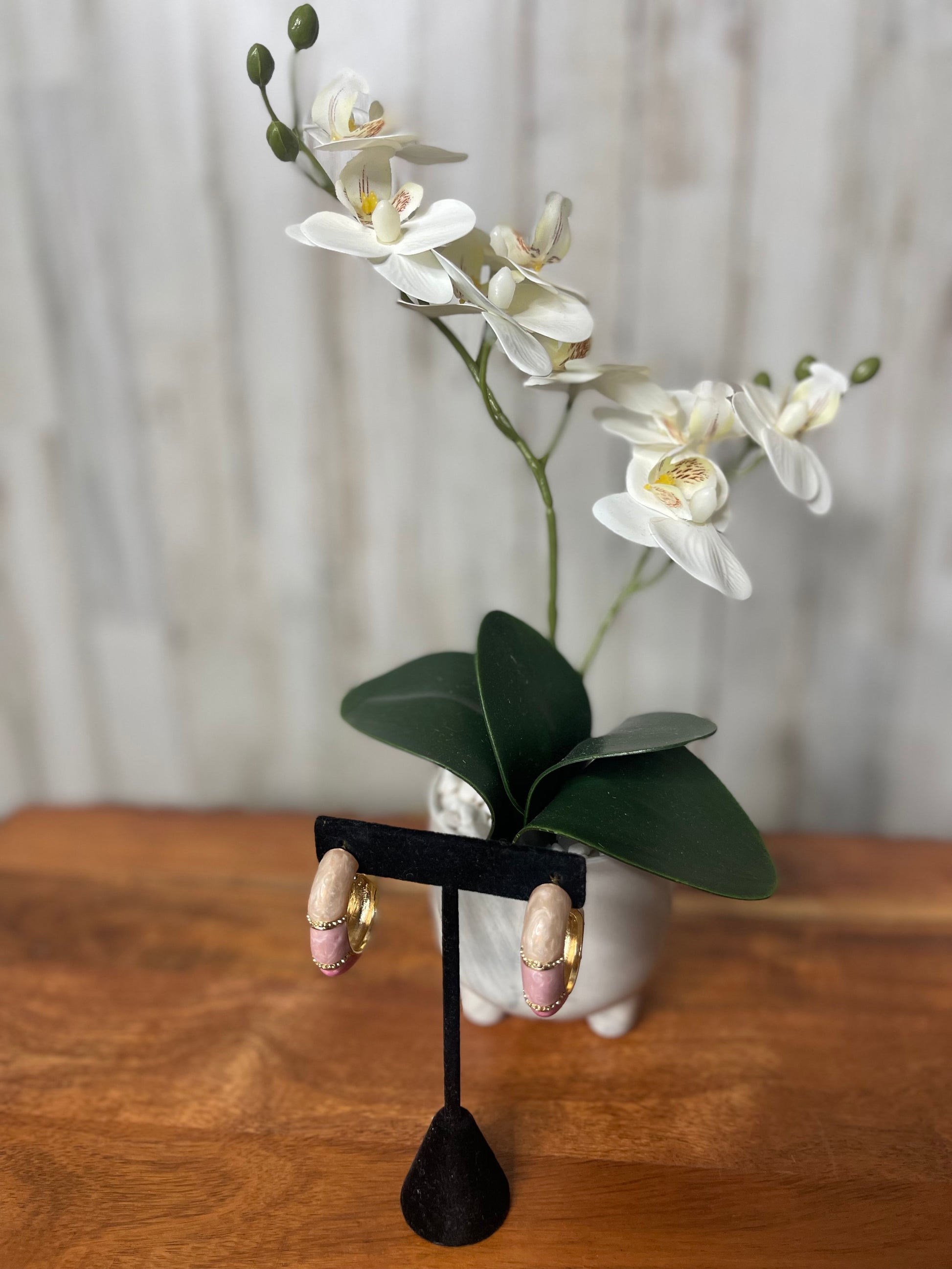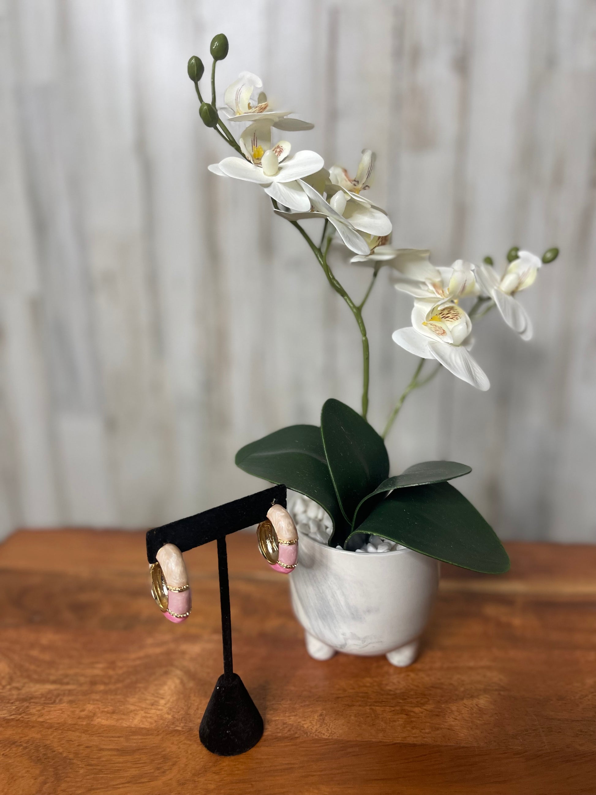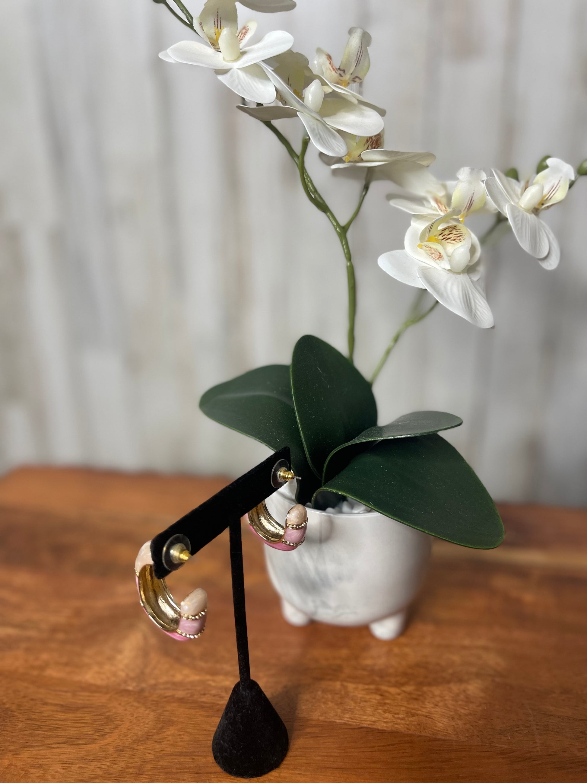 These color blocked two-tone hoop earrings are the perfect accessory to add a touch of summer vibes to any outfit. Made with medium sized hoops, they offer a stylish and versatile option for any occasion. Pair them with our matching color blocked cuff bracelets for a complete and trendy look.