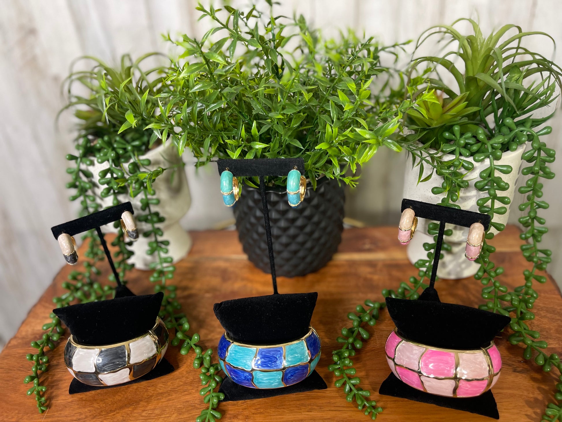 Elevate your style with our Two Tone Color Cuff Bracelet. Perfect for ladies with bigger wrists, these color block cuffs add a touch of elegance. Complete your look with our matching colored block hoop earrings. Expertly crafted for a flawless finish.Two tone color cuff bracelets. Great for everyday wear as well as formal wear.